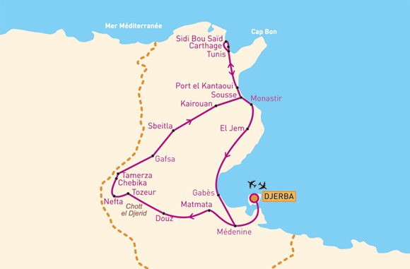 Si d’aucuns considèrent le désert de Sahara comme un lieu hostile, pour d’autres, c’est plutôt une terre d’expédition pour des vacances uniques. Les villes comme Douz, situées aux portes du Sahara, constituent des destinations parfaites pour ce genre d’expérience. En plus des escapades à dos de chameau ou des randonnées en 4x4 en plein désert, Douz c’est aussi le festival du Sahara qui s’y tient chaque année vers la fin de l’année. Cet évènement constituent une parfaite occasion pour découvrir la culture et le folklore saharien et tunisien. Le Chott al-Jerid, un lac asséché, est aussi une curiosité rare, à voir absolument pour ce passage à Douz. Toujours aux portes du désert, la ville de Tozeur termine la partie sud de ce circuit en Tunisie. Dernière escale et non la moindre, Tozeur est une ville envoûtante à sa manière. A découvrir, des piscines naturelles situées aux environs du village abandonné de Chebika, ce dernier étant situé à quelques kilomètres hors de la ville de Tozeur. Cette dernière séduit également par sa magnifique palmeraie, en frange du Sahara. Une randonnée en 4x4 depuis Tozeur permet par ailleurs de découvrir un autre village abandonnée : Midès. A partir de là, on peut effectuer une randonnée pédestre pour atteindre une magnifique gorge.